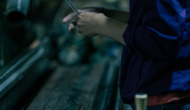 除了编织碳纤维,还运用西阵织工艺将金丝银线编织其中,表现出水流的纹样,不仅具有装饰性,还能通过图案展现其功能性。期待西阵织的应用不仅局限于和服,通过将西阵织技术与岛津设计的现代设备融合,拓展至更多的新领域。