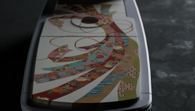 病的健康筛查。两种功能合二为一、可实现无痛检查的PET装置,充满了温情与关怀。在这台特别的设备上,装饰了京都友禅的定制图案。