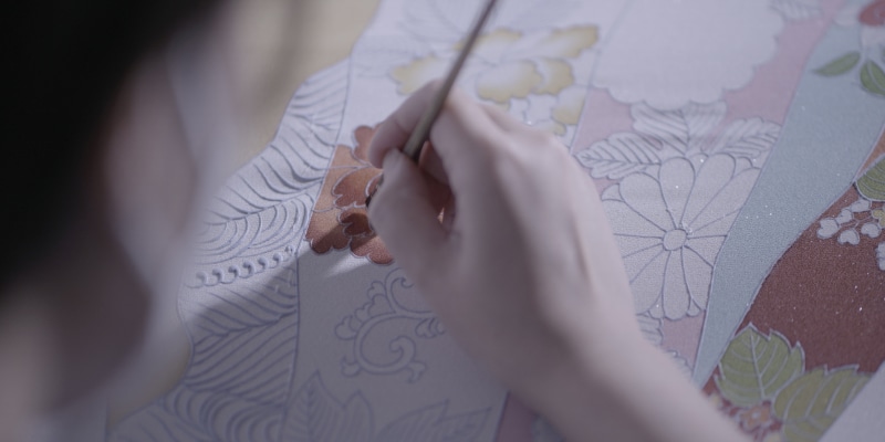 将各种吉祥纹样与熨斗形图案相结合,设计出和风粉红丝带样式,寄托着女性一生的幸福祝愿。与绘师共同创作的特别友禅图案适合用于人生的新起点。手工染制后,还经过了可提高耐光、防污的珍珠色调加工(防水加工,和传统的和服织物相比,制成的床罩还具备卓越的功能。