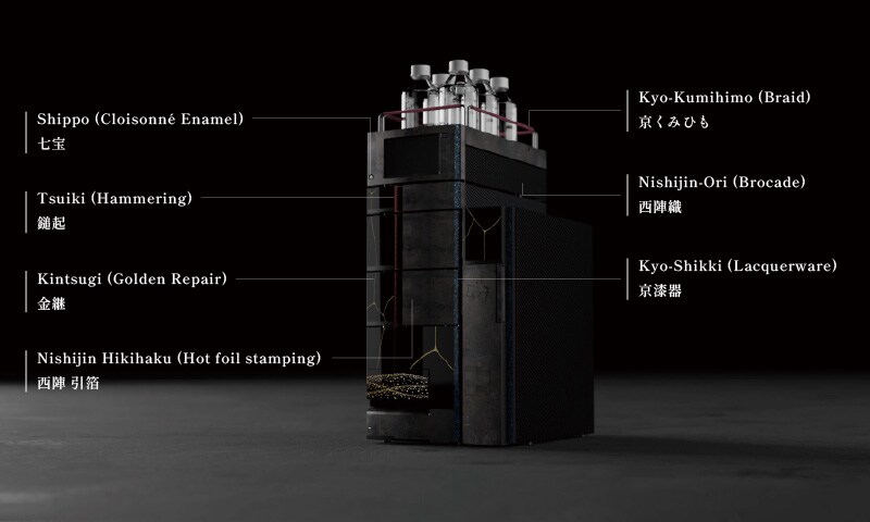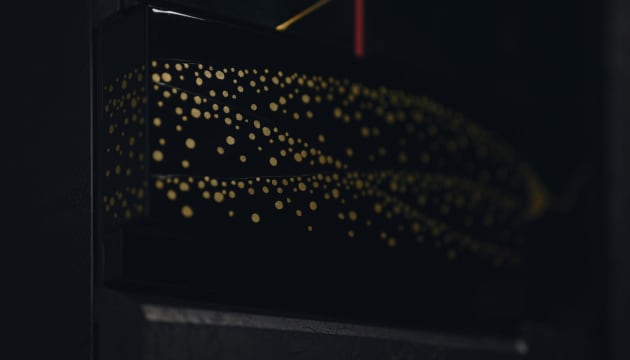 我们特别制作了彩绘有表现液相色谱原理的流体图案,同时,仪器采用了能够展现岁月变化的金属箔和涂漆,这个设计旨在历久弥新,让用户在长期使用中仍能对产品爱不释手。并且,还融入了可以通过金缮修复的“修复文化”,使仪器伴随修复提升其价值,通过工艺技术为分析仪器带来长期的信任感。