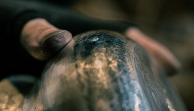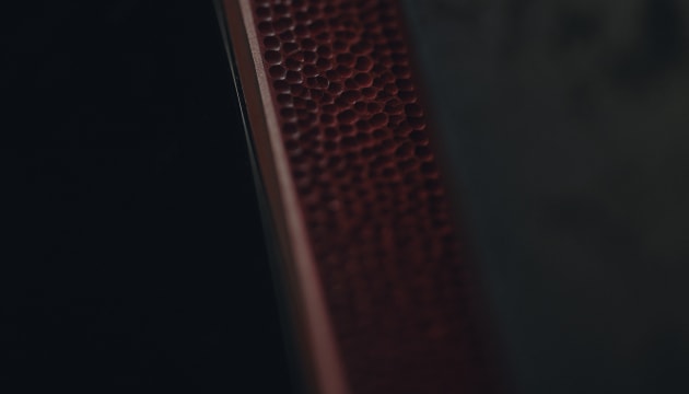 通过手工锤打金属表面,可形成独特的凹凸纹理。在其表面进行烧漆处理,既能缓解传递到金属部件的设备热量,又增添了漆的抗菌性能。随着使用次数的增加,漆的颜色会展现出岁月变化的风韵,长期使用会让用户对装置更加爱不释手。