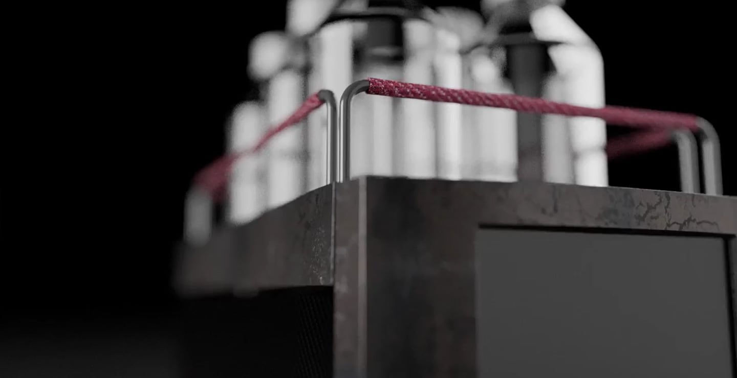 为了缓和瓶与金属碰触时的声音,使用了可持续材料进行手工编织,并配合主体颜色为每个瓶架设计不同的图案和风格。