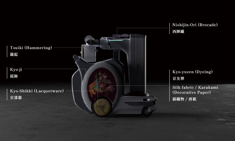 The karakami paper technique is used for the sliding paper doors in traditional kyomachiya townhouses in Kyoto. Shimadzu’s original pattern was made using woodblock printing, adding charm to custom-made items. Each time the main unit moves, the white gofun pigment in the coating, which is made from shells, reflects the light, making the pattern appear and disappear. In this highly sustainable design, only damaged areas are repaired, just as in sliding paper doors.