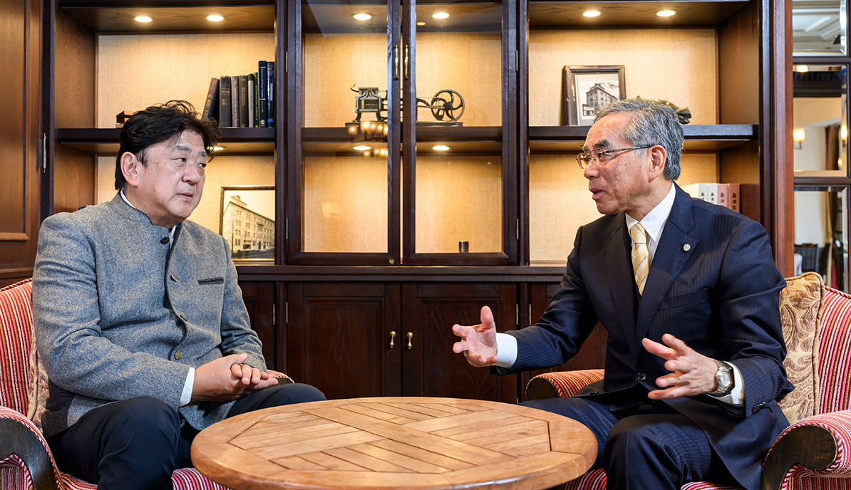 World-famous conductor Yutaka Sado and Shimadzu Corporation President and CEO Yasunori Yamamoto came together to exchange views and perspectives exploring the future of humanity.