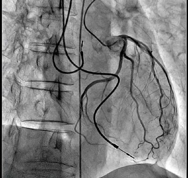 Angiography systems continuously display an X-ray image of the patient's chest area on the monitor throughout the catheterization procedure. Of course, to minimize radiation exposure, X-ray levels should be as low as possible. However, if the X-ray level is too low, it is like trying to find a crow in the dark by candlelight, which results in seeing only blurry images of blood vessels, stents, and the heart.