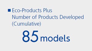 The amount of CO2 emissions reduced by the use of Eco-Products Plus products sold to customers during a year is defined as the CO2 reduction contribution, and this amount in FY2023 was 10,352 tons. The cumulative contribution of CO2 reductions due to Eco-Products Plus models during the past 10 years was 67,149 tons.In addition, we have set a mid-term target of increasing the ratio of Eco-Products Plus to product sales to 30% by 2030,and the actual result for FY2023 was 21%.