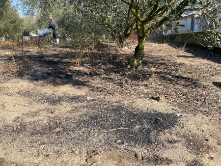 Olive Grove with Soil Improvement Charcoal Spread on It