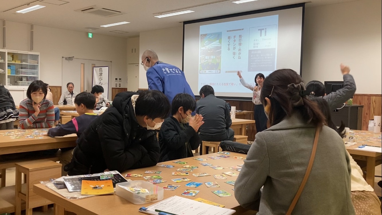 We were happy to get some comments from participants that they could learn the importance of recycling together with their families while becoming more familiar with science. They also noted that the analysis instruments were impressive. In “Kagaku Karuta,” the adults played on equal terms with the children because the winner was the person with the highest sum of atomic numbers rather than the number of cards.