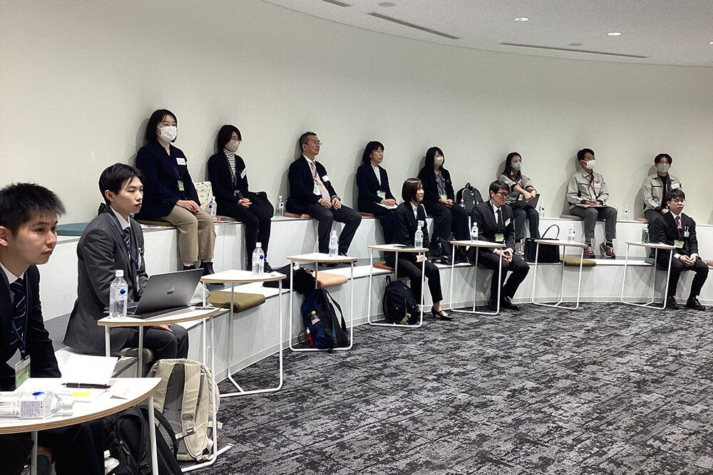 In this program, the students present details of their research to the industrial researchers they are visiting and receive comments and advice from a business perspective, followed by an exchange of views. The objective is for students to come into contact with role models, and to gain a concrete image of the research output in the industrial world.