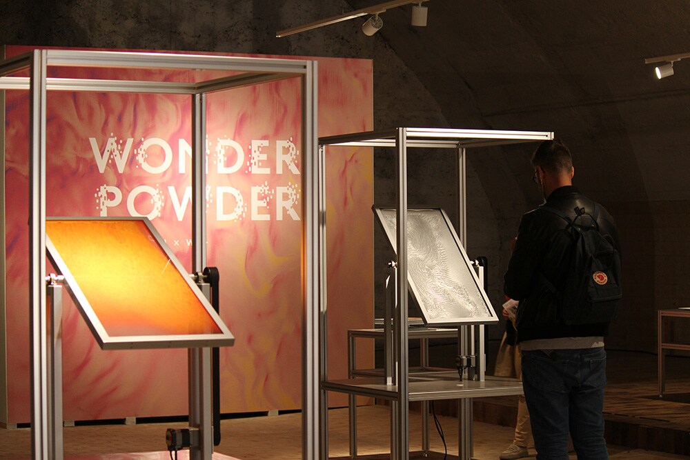 Generally, touching the artwork is restricted at exhibitions, but at this exhibition, visitors could touch and “interact” with the artwork. The Wonder Powder celebrates beauty and harmony in total synergy and let us understand that science goes beyond its own borders crossing our everyday life.