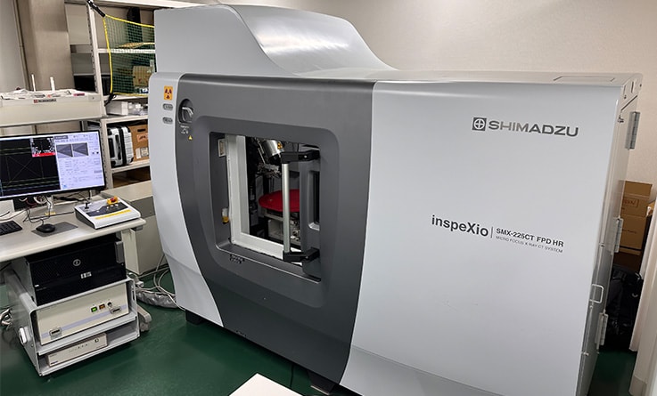 The requests involved X-ray CT images of the rocket propulsion unit, as well as the heater parts responsible for thermal regulation on the lunar surface, where the temperature drops to -100 ℃ or lower. Various patterns of imaging conditions were tried using the Shimadzu inspeXio SMX X-ray CT system, leading to success with images of spatter (metallic particles produced during welding), which other companies found difficult.