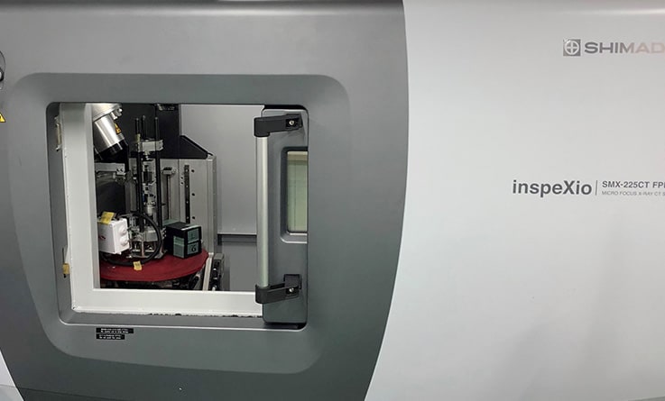 Shimadzu DinamiCT is a testing machine developed by Nakayama, and installed within the instrument. With this instrument, X-ray CT images can be obtained while applying a load to or tilting the analysis target.