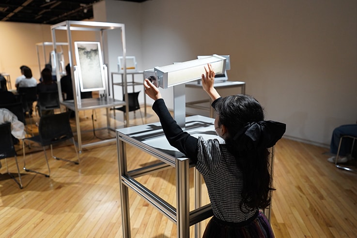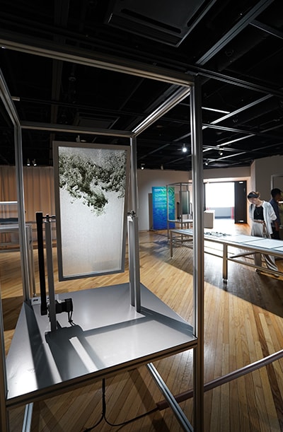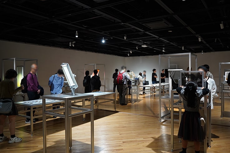 The exhibition included hands-on artwork on the theme of "A fusion of art, science, and technology." When encountering this work, which was inspired by chromatography technology, Shimadzu’s flagship technology, participants were invited to touch the pieces freely, tilting them and watching the results, or spending a quiet and reflective time taking pictures and videos.