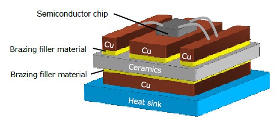 Conventionally, ceramic PCBs are manufactured by brazing and etching aluminum nitride and copper. However, this has issues, as the brazing process takes a long time, brazing filler material is very expensive, and defects can be caused by heat treatment.