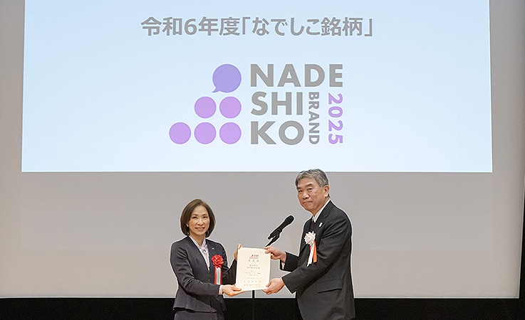Yoshino Kajitani, Managing Executive Officer and in charge of diversity management, receiving the selection certificate at the selection ceremony for the Nadeshiko Brand 2025 (Photo at left, March 2025)