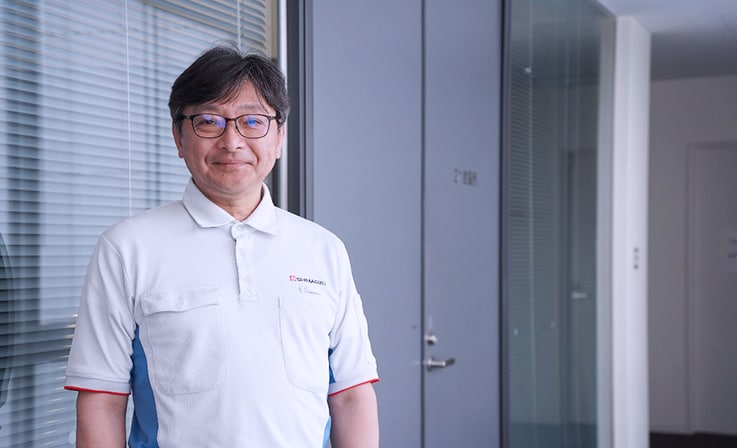 “New employees can learn all about Shimadzu later, but right now, they likely have novel ideas to share precisely because they know so little about Shimadzu. This, I believe, is what new employees have to offer,” says Naoki Matsuda, who is an engineer at heart. Before he was assigned to the Human Resources Department in 2017, he spent more than 20 years at the Technology Research Laboratory, a Shimadzu research department, where he studied and developed analytical and measuring instrument technology.